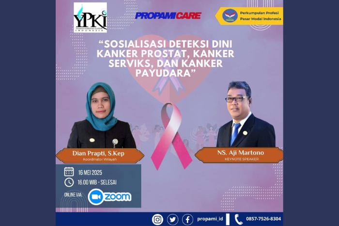 Kegiatan ini merupakan hasil kolaborasi PROPAMI dengan Yayasan Pemerhati Kanker Indonesia (YPKI) sebagai upaya meningkatkan literasi kesehatan masyarakat.